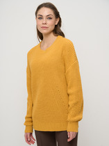 Уютный свитер с крупной вязки с узорами косы выполнен из мягкой хлопковой пряжи с акрилом. Модель абсолютно не колется и очень комфортная в носке даже на голое тело. Отлично согревает при этом не перегревая. Хорошо сочетается с брюками из эко-кожи и джинсами на флике, вельветом.