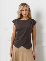 Совместные покупки Пермь Женская одежда Майки, топы — Vilatte Топ из хлопка с эластаном в рубчик с матовым металлическим покрытием D43
