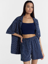 Vilatte Топ с закрытым декольте из хлопка с эластаном в рубчик с матовым покрыти