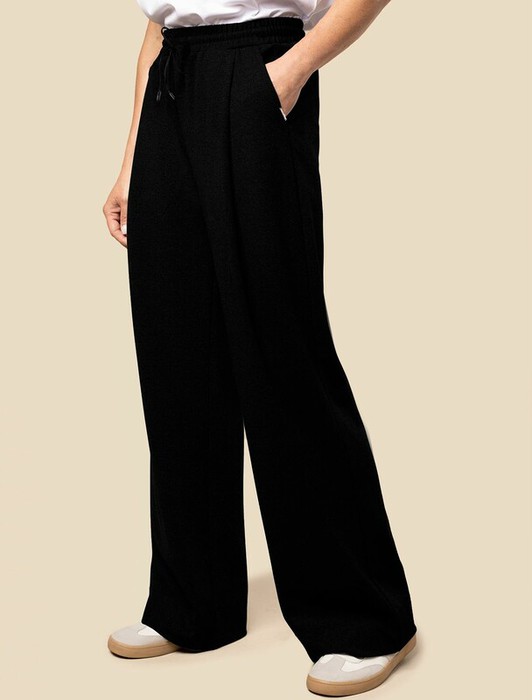 27.03 Vilatte Трикотажные широкие брюки со шнурком D44.132 черный