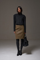 Юбка с разрезом выполнена из плотного лиоцелла. Модель, скроенная по косой мягко, струится по телу и отлично драпируется. Удобный пояс на эластичной резинке. В теплое время года ткань приятно охлаждает кожу. Добавление синтетических волокон в составе изделия, предотвращает сминаемостьи поддерживает формоустойчивость. Юбка сочетается в костюме с топом D23.063, блузкой D29.266, D29.267 и жилетом D27.002