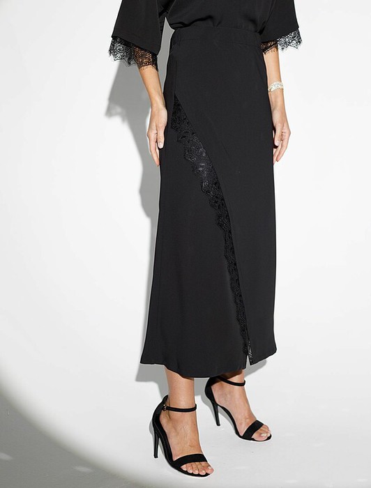 Совместные покупки Пермь Женская одежда Юбки — Vilatte Юбка миди на запАх из креп-шифона с кружевом D26.206 черный