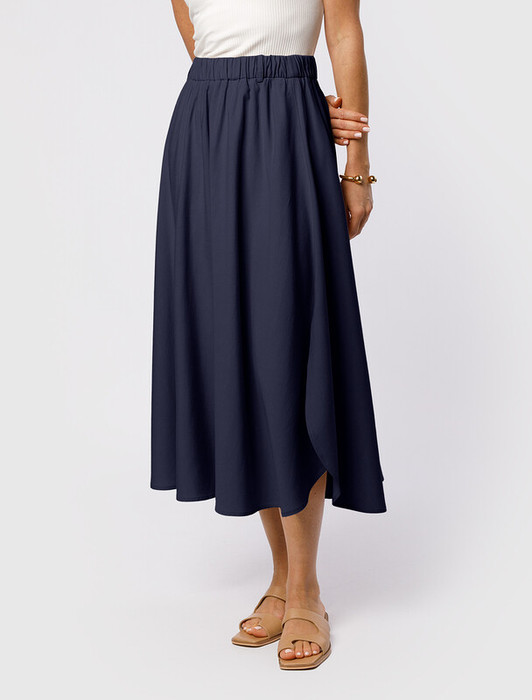 Юбка выполнена из плотного лиоцелла. Модель дополнена высоким разрезом со скругленными краями и поясом на эластичной резинке. Ткань изделия отлично держит форму, плавно драпируется и не просвечивает. В теплое время года приятно охлаждает кожу. Добавление синтетических волокон в составе изделия, предотвращает сминаемостьи поддерживает формоустойчивость. Сочетается в костюме с топом D23.063 и блузкой D29.266, D29.267 и жилетом D27.002