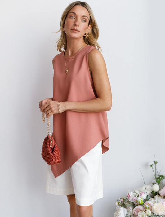 27.03 Vilatte Удлиненный топ из плотного лиоцелла D23.063 дымчато-коралловый