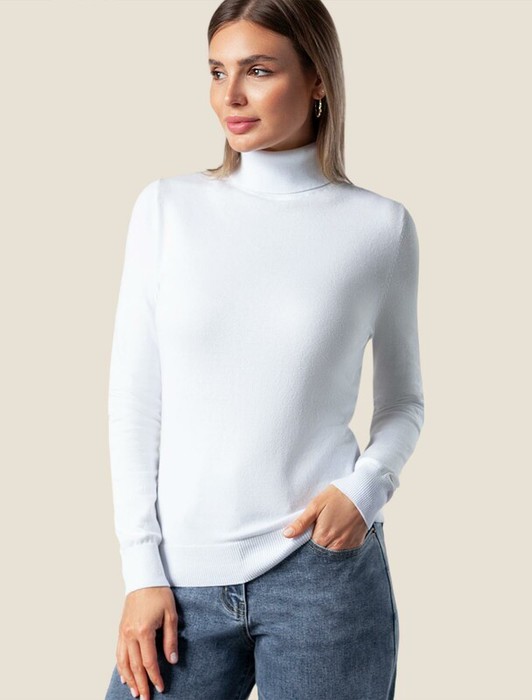Совместные покупки Пермь Женская одежда Джемперы, свитеры, водолазки — Vilatte Водолазка тонкой вязки из хлопка с нейлоном D34.122 белый