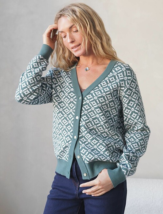 Vilatte Жакет тонкой и эластичной жаккардовой вязки D31.388 полынный