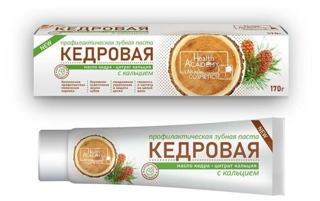 Кальций и экстракт кедра в составе пасты обеспечивают эффективный уход за полостью рта, укрепляют зубную эмаль, препятствуют развитию кариеса.