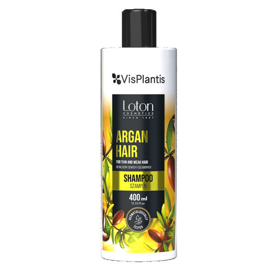 VisPlantis Шампунь для тонких ослабленных волос с аргановым маслом. Питательный шампунь, обогащенный аргановым маслом с ценными кондиционирующими свойствами. Аргановое масло, известное как «жидкое золото», богатое омега-кислотами и витамином Е, обеспечивает волосам необходимое увлажнение и регенерацию. Ваши волосы становятся более гибкими и блестящими. 400 ml .