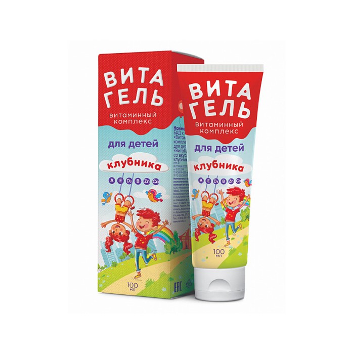 Витаминный комплекс для детей от 3х лет, действие которого обусловлено свойствами входящих в его состав витаминов (А, В1, В2, В6, С, D3, Е), микро- и макроэлементов. Витамины, содержащиеся в геле, являются важными компонентами, необходимыми для гармоничного развития детского организма. Форма выпуска: гель в тубе 100мл. Продолжительность приема: 1 месяц. При необходимости прием можно повторить. Возможны повторные приемы в течение года. Пищевая ценность в 100г: углеводы – 48г.Энергетическая ценность в 100г: 816кДж/192кКал.Противопоказания: индивидуальная непереносимость компонентов, состояния при которых противопоказаны препараты йода. Перед применением рекомендуется проконсультироваться с врачом. Детям с заболеванием щитовидной железы необходима консультация врача-эндокринолога. Детям до 14 лет принимать БАД по согласованию и под наблюдением врача-педиатра.Срок годности: 2 года. Не является лекарством. Способ применения:Детям с 3 до 7 лет по 10мл (2 чайных ложки) в день во время еды; детям с 7 лет и старше по 20мл (4 чайных ложки) в день во время еды.