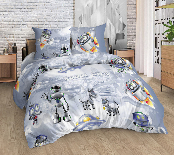Совместные покупки Пермь Товары для дома и дачи Постельное белье — ВЛАДЛЕН Детское постельное белье из бязи 1,5сп с 1 наволочкой Город роботов
