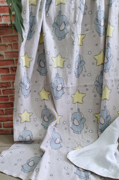 Одеяло с принтом Слоники, рисунок только с одной стороны.