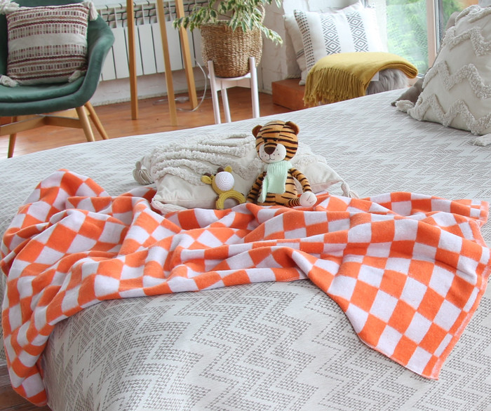 Совместные покупки Пермь Товары для дома и дачи Подушки, одеяла — ВЛАДЛЕН Одеяло детское байковое 100% хлопок - Клетка Оранжевая