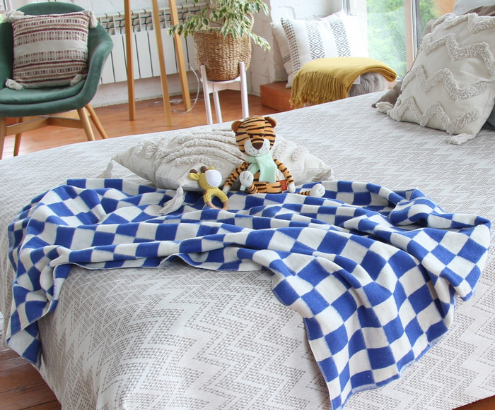 Совместные покупки Пермь Товары для дома и дачи Подушки, одеяла — ВЛАДЛЕН Одеяло детское байковое 100% хлопок - Клетка Синяя