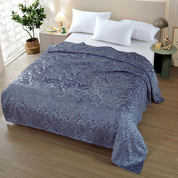 ВЛАДЛЕН Пледы велсофт - Листья (Серо-синий)