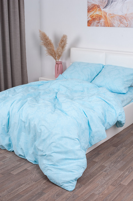 Совместные покупки Пермь Товары для дома и дачи Постельное белье — ВЛАДЛЕН Постельное бельё из поплина жаккард с простынёй на резинке - Голубой