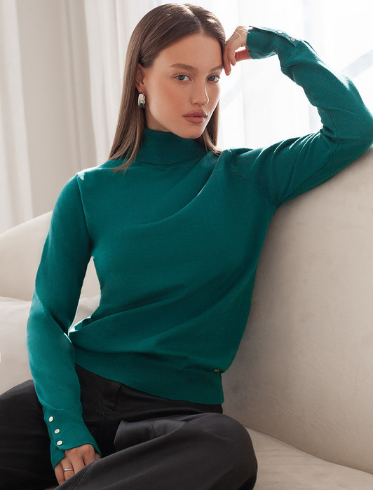 Состав: 82%Хлопок 18%ПА Плотность: 12 GG Параметры модели на первом фото: Рост 172, бюст 88, талия 64, бедра 88 Размер товара на первом фото: 42Водолазка тонкой вязки выполнена из хлопка. Лаконичная модель дополнена манжетами с золотистыми пуговицами. Изделие не сковывает движений и подходит для любой фигуры. Мягкая пряжа очень приятная к телу не колется и сохраняет тепло при этом не перегревая.