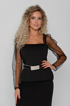 Состав: Трикотажное полотно с люрексной ниткой (75% вискоза, 15% акрил, 5% эластан, 5% люрекс), отделка изделия гипюр стрейч (100% полиэстер).