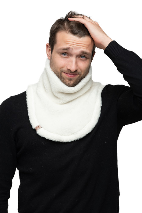 ВОРОТНИК-МАНИШКАВоротник-манишка из натуральной овечьей шерсти – самый лучший способ защиты области шеи, горла, верхнего отдела позвоночника.Манишка выполнена из уникального материала – шерстяной мех на трикотажной, эластичной основе. Высота ворса 5-7 мм, высокая плотность меха. Она мягко облегает шею, способствует глубокому прогреванию, сохранению тепла. Благодаря широкой площади охватывает также грудную область и верхнюю часть спины. -оказывает массажный эффект, улучшает микроциркуляции крови в области позвонков. - профилактика простуды и воспаления горла, при ангине - профилактика остеохондроза шейных позвонков - защита горла и груди при работах на холоде, при влажности и сквознякахМанишка универсальна для взрослых и детей