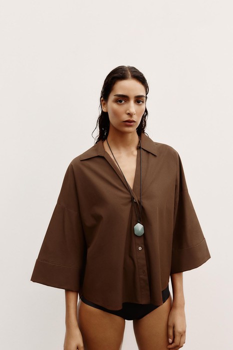 Совместные покупки Пермь Женская одежда Блузки, рубашки — zara POPELINHEMD MIT WEITEN RMELN Braun | 2246/534/700