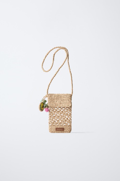 zara RAFFIA-EFFECT MOBILE PHONE POUCH WITH CHARM