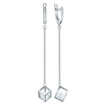 Серьги кубы на цепи из серебра с фианитами родированные 925 пробы С-0093р1200