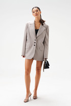 Жакет женский свободного силуэта со спущенным плечом. По переду застежка на две пуговицы. Рукав длинный,по центру рукава декоративный шов с разрезом.