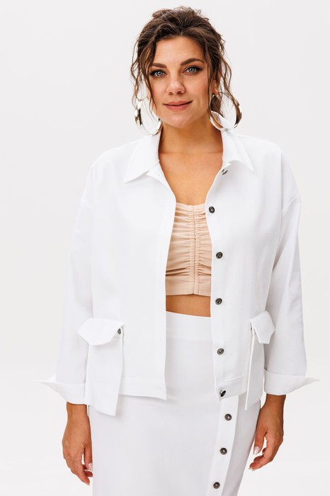 Особую изюминку модели придают два съемных кармана на кнопках – их можно отстегнуть для более лаконичного образа или оставить для практичности и стильного акцента. Ткань не сковывает движения и хорошо держит форму.