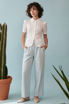 Жакет с акцентной талией выполнен из ткани черного цвета. Характеристики: прямой крой, на поясе и по низу изделия резинки фиксаторы, хлопковая подкладка, отложной воротник, по переду имитация карманов на груди, и накладные карманы ниже талии, застёжка центральная на молнии, отрезная спинка, рукав свободный, по низу рукава резинка. Длина изделия по спинке от края горловины 87 см, длина рукава от края горловины 76 см.