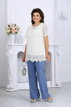 ESENIA Джемпер поло ажурный из вискозы с коротким рукавом №2 - Бежевый