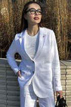 Этот жакет - настоящая жечужина в гардеробе. Небанальный вариант застёжки сбоку на лицевой стороне, и потайной пуговицей внутри изделия придаёт жакету характер, подчёркивает силуэт и линию талии. Жакет выгодно акцентирует фигуру, создавая утончённый и женственный образ. Благодаря декоративным рюшам из вуали, он легко станет центральным элементом образа. Карманы с клапанами.