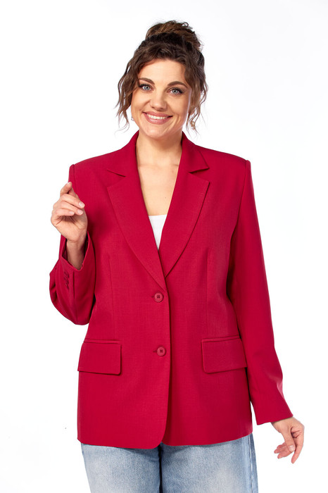 Жакет женский полуприлегающего силуэта, с втачным рукавом, воротник отложной с лацканами, по переду- карманы с клапанами, по низу рукава шлица с пуговицами, застёжка спереди на петли и пуговицы. Изделие на подкладке.