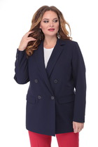 Жакет женский удлиненный, из трикотажной ткани, на подкладке, полуприлегающего силуэта с центральной бортовой застежкой на пуговицы до линии перегиба лацкана. Спереди рельефные швы от плечевого шва, отрезной бочок и карман с клапаном. Спинка с рельефами от плечевого шва. Рукав втачной, двухшовный. Воротник пиджачного типа. Длина по спинке 66 см, длина рукава 62 см.