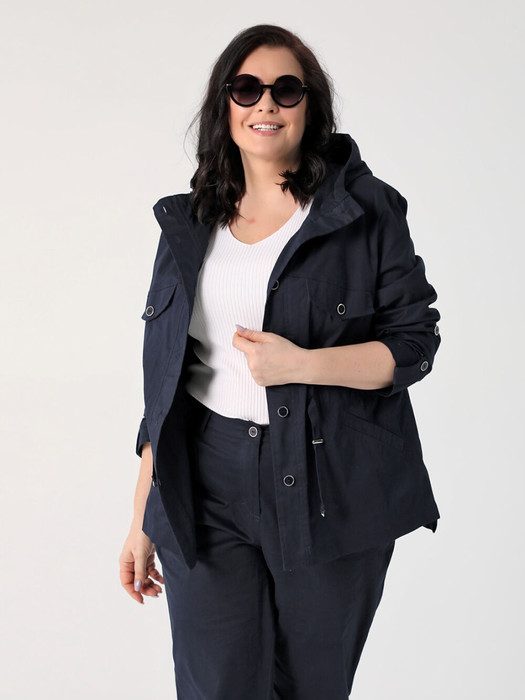 Жакет-ветровка  БЕЗ ПОДКЛАДКИ прямого силуэта подходит для женщин и девушек любого возраста.  Длинный рукав рубашечного кроя можно сделать короче посредством паты. Застежка - на петли и пуговицы. Воротник - стойка, переходящая в регулируемый капюшон. Линию талии, при желании, можно подчеркнуть с помощью кулиски. Есть удобные нижние карманы с листочкой. Эта ветровка из плотного хлопка с разноуровневой линией низа выручит Вас весенним днем и  прохладным летним вечером в городе, на прогулке и на отдыхе. В нашей летней коллекции можно подобрать компаньоны к этой легкой куртке: блуза (арт.25232), узкие брюки (арт. 25240) и широкие (арт.25242). Фантазируйте с аксессуарами и обувью, и Ваше лето будет стильным и комфортным!