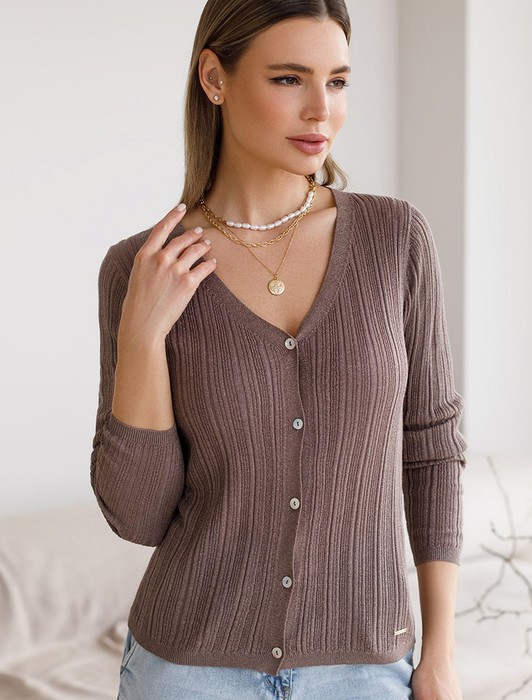 Состав: 72%Вис 28%Мет (люрекс) Параметры модели на первом фото: Рост 170, бюст 83, талия 64, бедра 88Жакет выполнен из вискозы тонкой вязки с мягким люрексом. Нежная пряжа очень приятная к коже, совсем не колется, поэтому изделие можно носить как первый слой на голое тело или с топом, как дополнение к образу. Комфортная длина выреза подходит для любой фигуры. Пуговицы из натурального перламутра подчеркивают изящный блеск изделия.