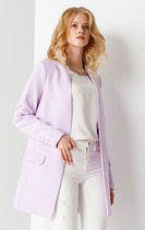 Жакет однобортный умеренного объема, приталенного силуэта. Силуэт изделия создается за счет отрезных бочков на спинке и полочке, а также за счет среднего шва и плечевых вытачек на спинке. На полочке нагрудная вытачка переведена в плечевой шов. Плечевой пояс расширен и поддерживается плечевыми накладками. Рукав втачной, длинный, двухшовный. Воротник отложной с отрезной стойкой, пиджачного типа. Застежка на уровне линии талии на одну петлю и пуговицу. Жакет полностью обработан притачной подкладкой. Длина изделия до середины бедер. Фурнитура и материалы отделки могут незначительно отличаться от тех, что на фотографи.