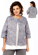 Легкий жакет на подкладке с объёмными рукавами. Перед на запах без застежки, под пояс по талии. Длина по спинке 72-78 см.