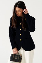 Жакет из костюмной ткани в стильном цветовом сочетании поможет в создании эффектного образа.