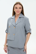 Жакет прямого силуэта с имитацией центральной застёжки на пуговицы. Рукав втачной одношовный, длиной три четверти,застегивающийся на пату. Воротник пиджачного типа . Линия низа фигурная, симметричная .