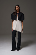 Классический приталенный жакет из текстильной ткани. Детали: жакет с отрезными бочками и нагрудными вытачками, пиджачный воротник, прорезные карманы, двубортная застежка на петли и пуговицы, спинка со средним швом, втачные двухшовные рукава, жакет на подкладке