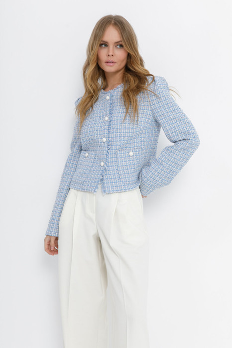 Укороченный жакет из фактурной ткани в стиле «шанель».