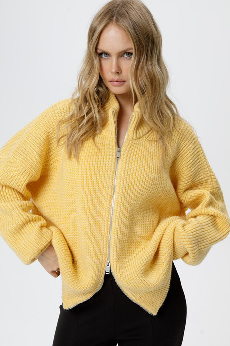 Вязанный объемный жакет на молнии с добавлением шерсти.