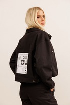 Детали: приталенный силуэт, пиджачный воротник, функциональные карманы, двубортная застежка на петли и пуговицы, спинка со средним швом, втачные двухшовные рукава, жакет на подкладке.