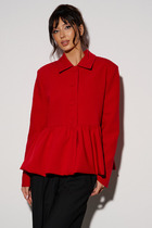 Приталенный жакет со складками и расширенными плечами из фактурной ткани.