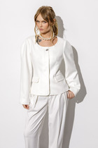 Приталенный жакет с круглым вырезом из текстильной ткани (приобрести юбку с фото можно по арт. 6528, брюки по арт. 6726).