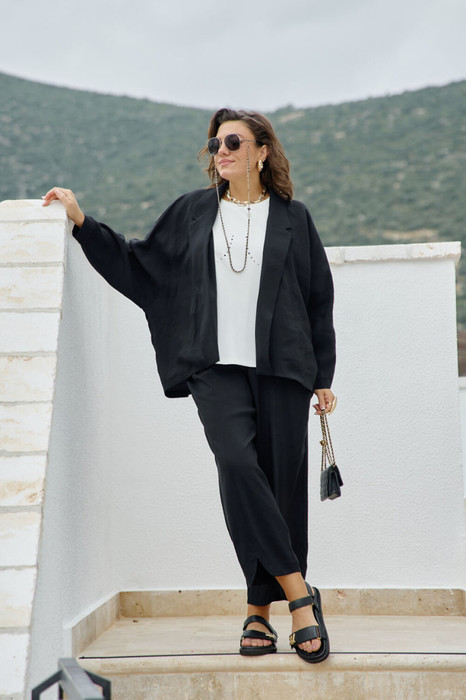 Жакет в спортивном стиле из ткани купра. Жакет прямого силуэта, пластичная форма мягкая, плавная. Линия плеч с естественным наклоном и плавным переходом в линию рукава. Жакет свободный, без подкладки и застежки. Крой легкий, сохраняющий объем изделия. По переду выполнены удобные карманы с листочками. Крой рукава-реглан с манжетой по низу и застежкой на кнопку. Спинка разрезная с декоративным маленьким разрезом внизу. Воротник с отложными лацканами. Жакет подойдет для прогулок, посиделок с друзьями, похода в кафе и отдыха. Модель свободного кроя органично впишется в гардероб, всегда будет элегантной и уместной, эта модель «вне времени» и будет актуальна в следующих сезонах. Жакет комфортен в носке на каждый день, создает женственный и элегантный образ. Мы используем материалы высокого качества, делаем акцент на фигуру и современный крой, что позволяет нашим изделиям не терять актуальности, а для вас служить выгодным приобретением. Длина жакета 71 см (р 52-56), 72 см (р 58-62), длина рукава 72 см (р 52-56), 73 см (р 58-62).