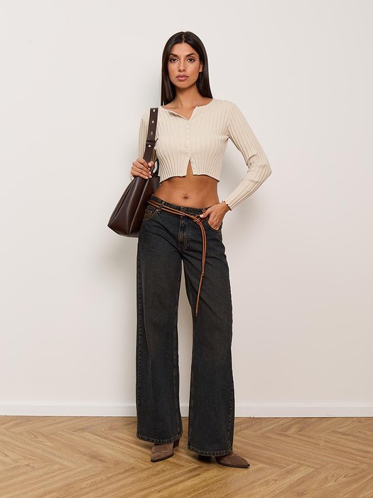 Цвет: стирка темная Состав: 100%Хлопок Материал: Blue denim 009 Вес материала: 11 Фит: Baggy fit Талия спереди: средняя Талия сзади: высокая Ширина колена: 28,5см Ширина низа: 29см ID: 253018