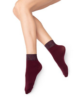 Классический гладкий укороченный женский носок Tensel LF 50/1 (эвкалипт) с рисунком в виде листиков выполненных перекидкой.