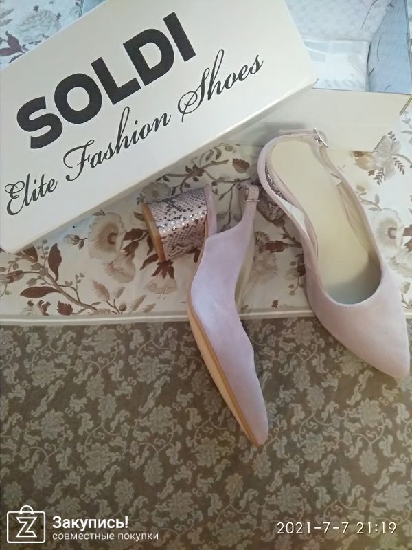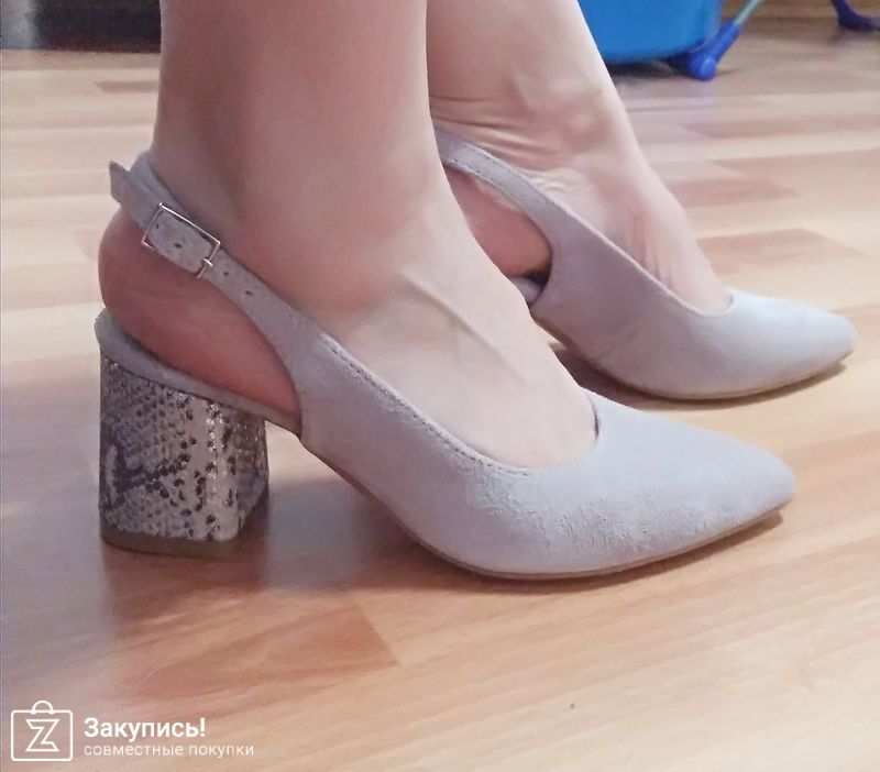 Материал кожа нюдовая, подошва чёрная, фурнитура серебро. Туфли понравились. У меня пограничный размер 39-40 (стопа 25,7), поэтому я беру узкие туфли бОльшего размера (взяла 40р.), но тут можно было бы и 39, т.к. они достаточно широкие ( по размерной сетке были 25см). Каблук удобный, 6см. Немного видны следы клея.