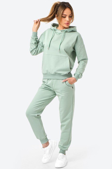 Свободный крой, мягкая горловина, эластичные манжеты, практичные карманы – женский костюм оттенка полынь подарит комфорт и уверенность!