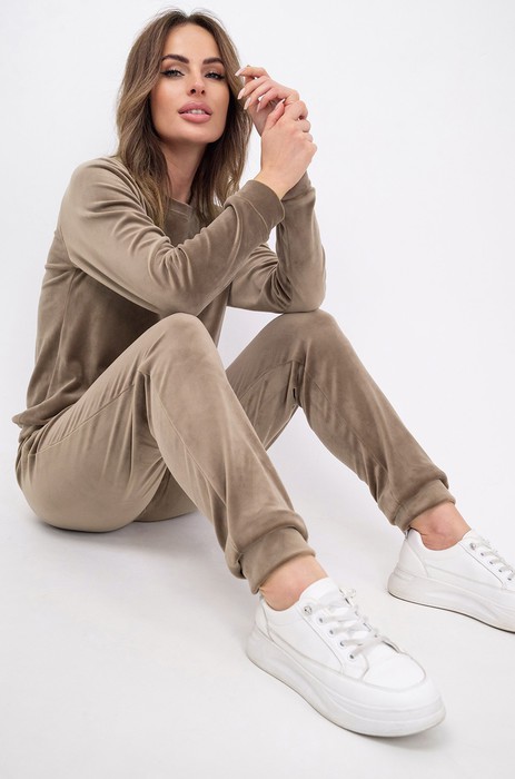 Стильный и невероятно мягкий женский велюровый костюм с брюками – стиль и комфорт в каждом движении. Комплект двойка представлен в цвете капучино.